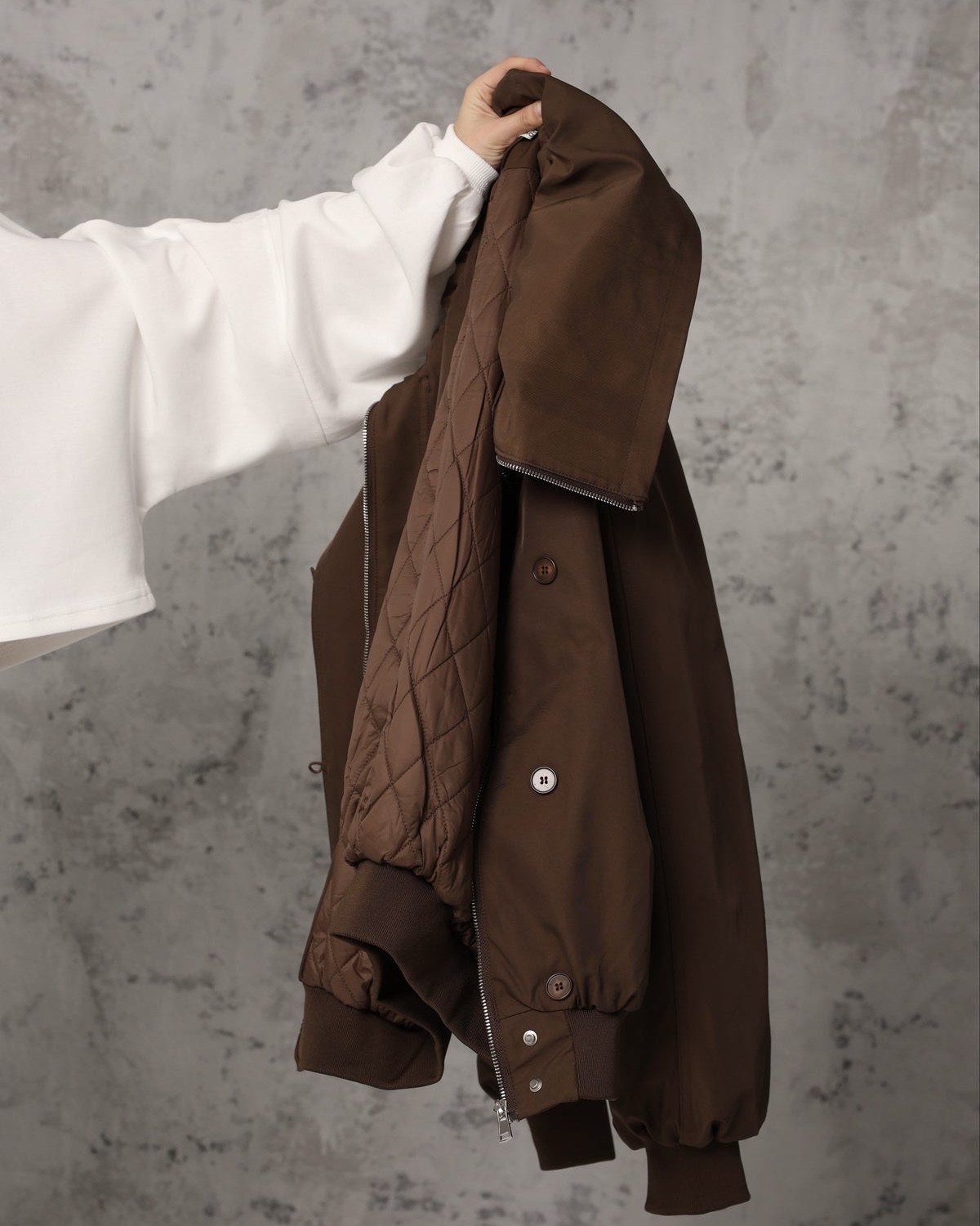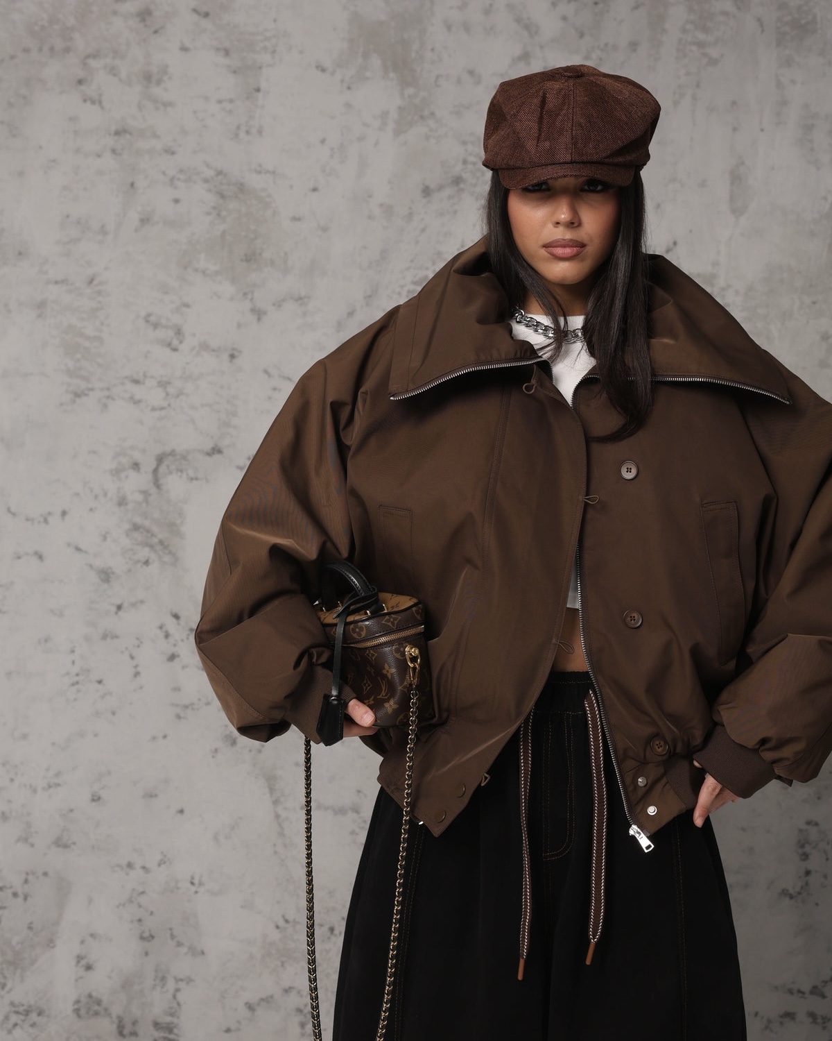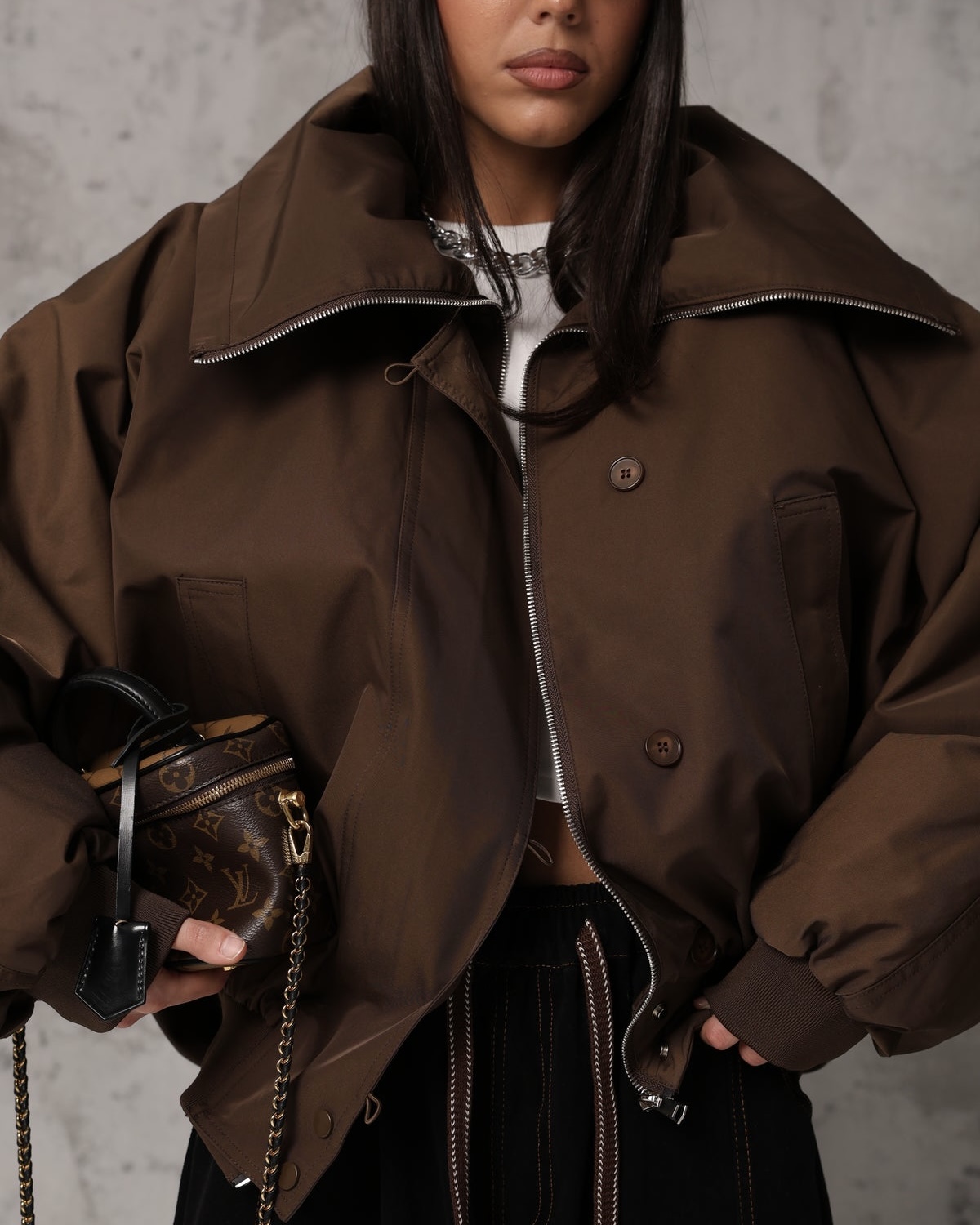 - Στυλ: Bomber, φαρδιά γραμμή (oversized fit).